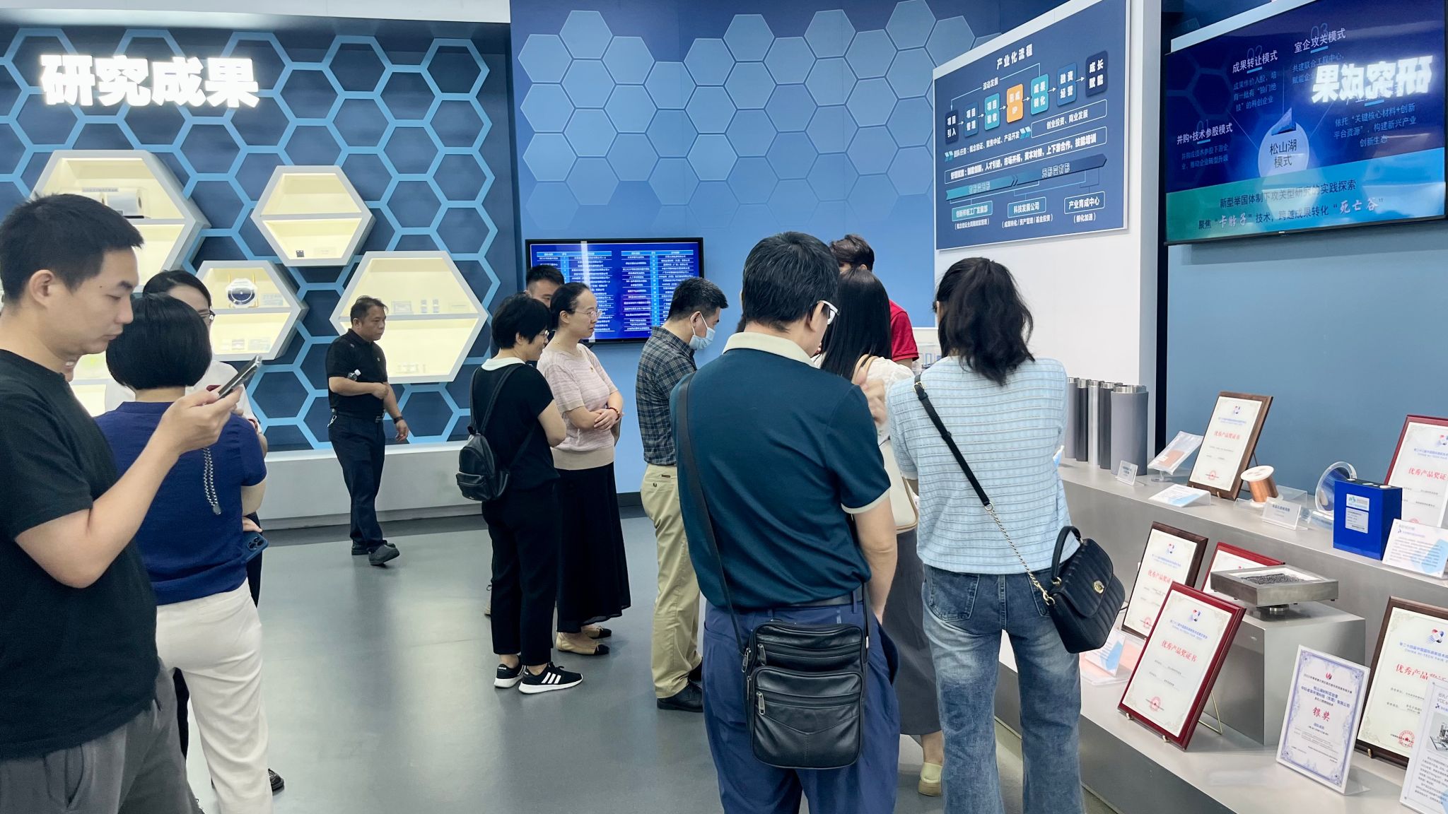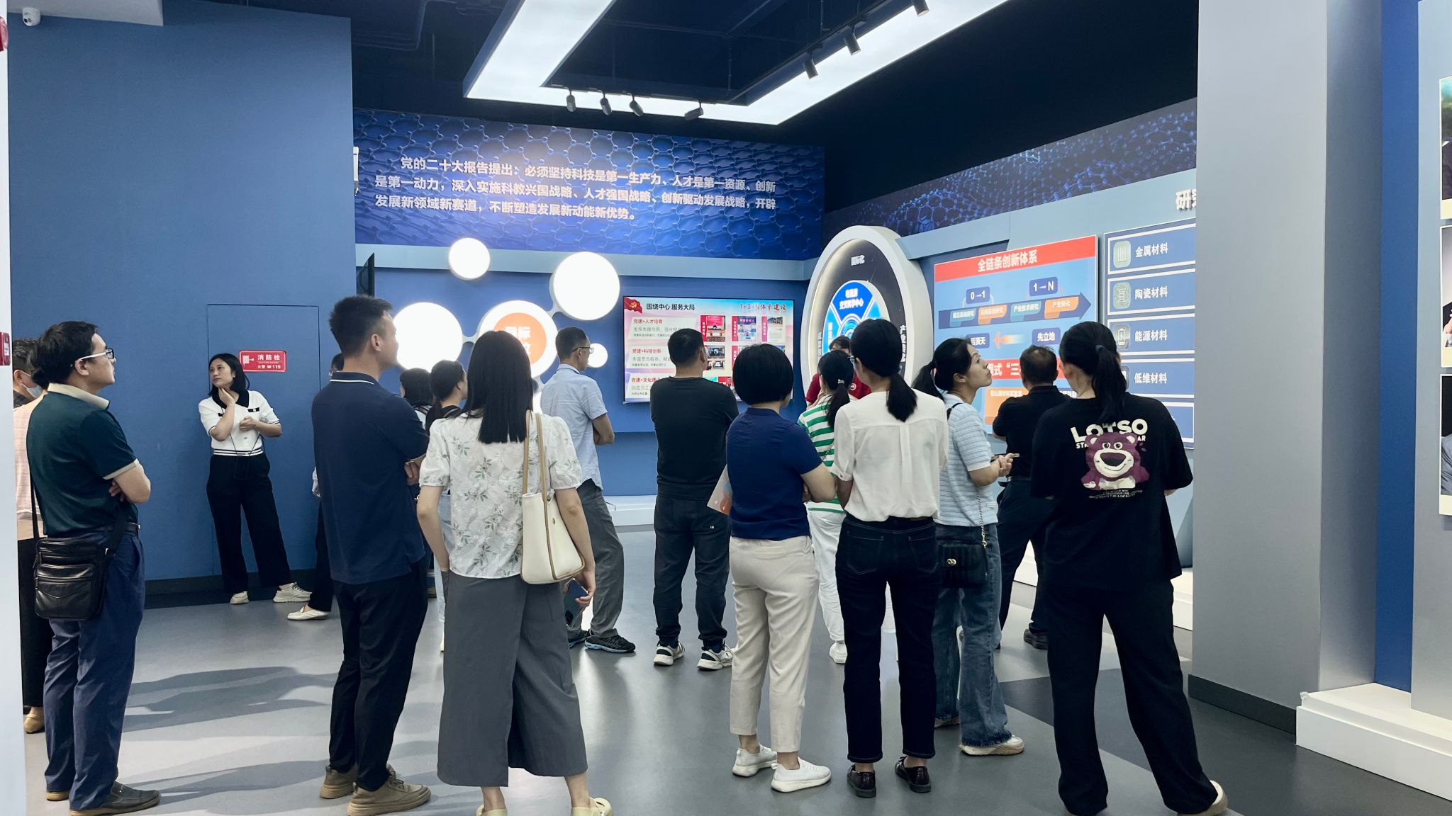 支部还开展了“党建引领聚合力 科技赋能创未来”主题党日活动,组织全体教职工前往松山湖材料博物馆参观学习。在讲解员带领下,全体教职工系统参观了“原子织造:从元素到材料”和“文明之光:材料与人类文明 ”两大核心展区,通过互动展示和实物观摩,深入了解了材料科学的发展脉络、特性研究以及在工业生产、日常生活中的创新应用,进一步增强了科技创新的使命感和责任感。