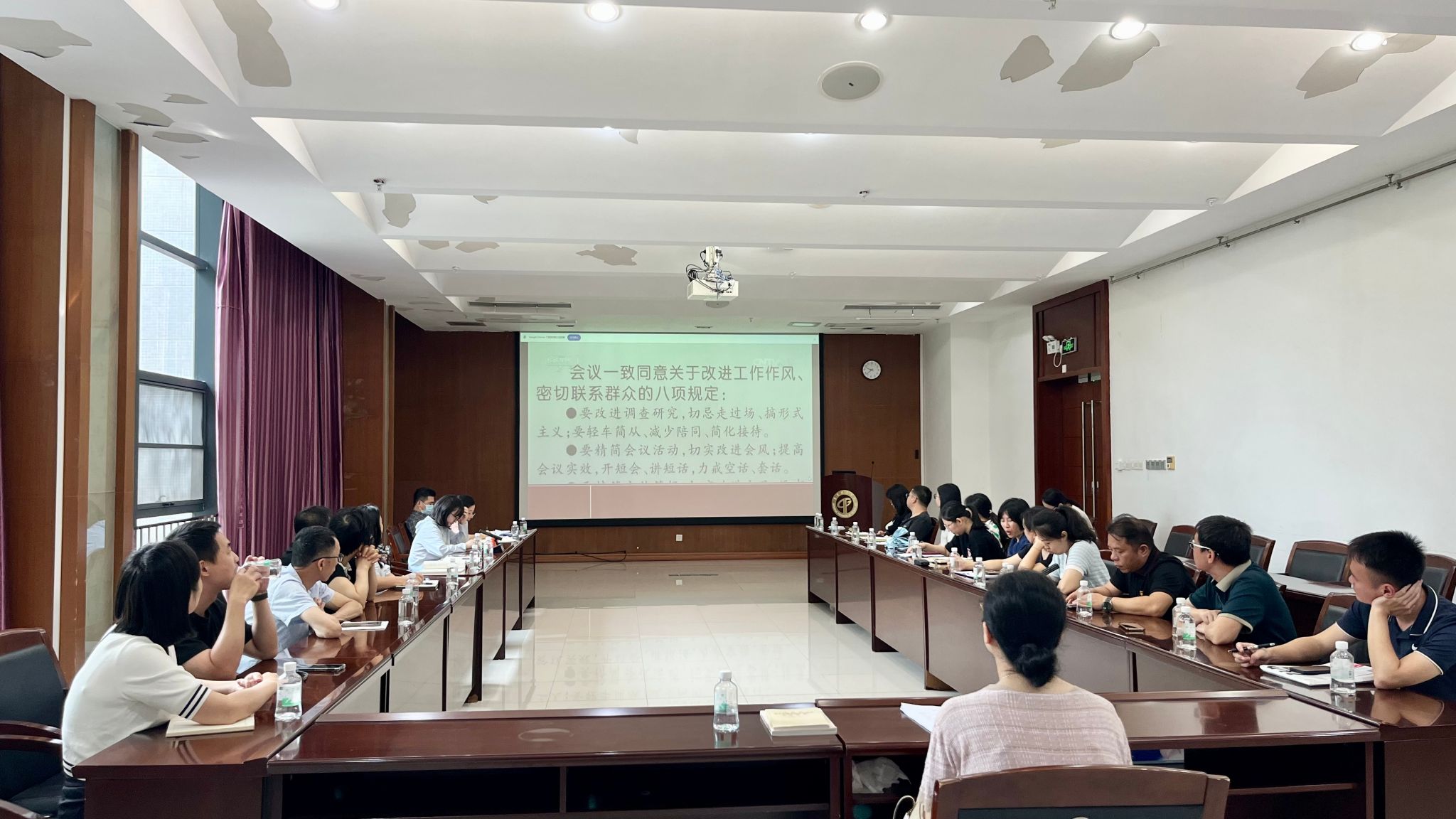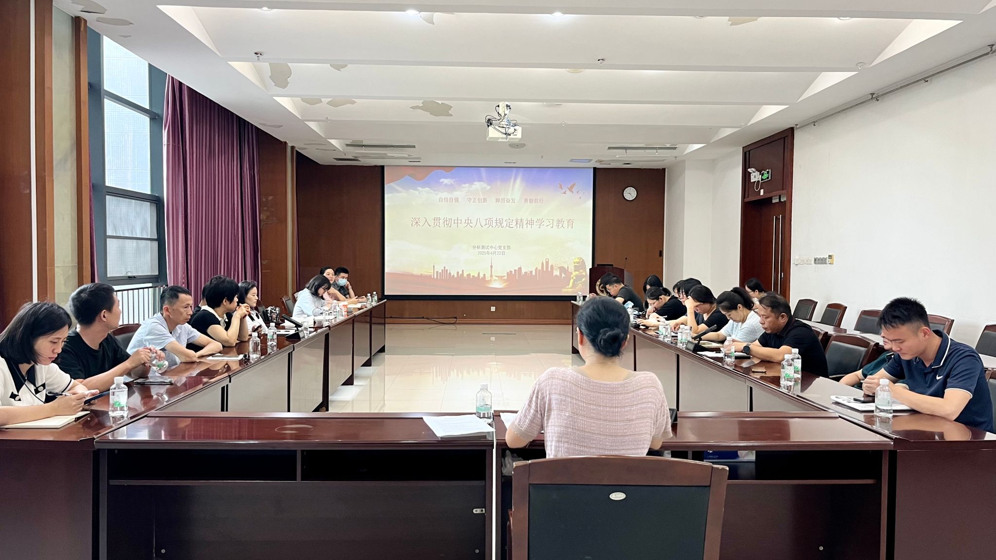 4月22日上午,分析测试中心党支部在学术会议中心301室开展政治理论集中学习会,专题学习习近平总书记系列重要讲话精神、全国两会精神和中央八项规定精神,并开展主题党日活动。会议由张敏书记主持,全体教职工参加。