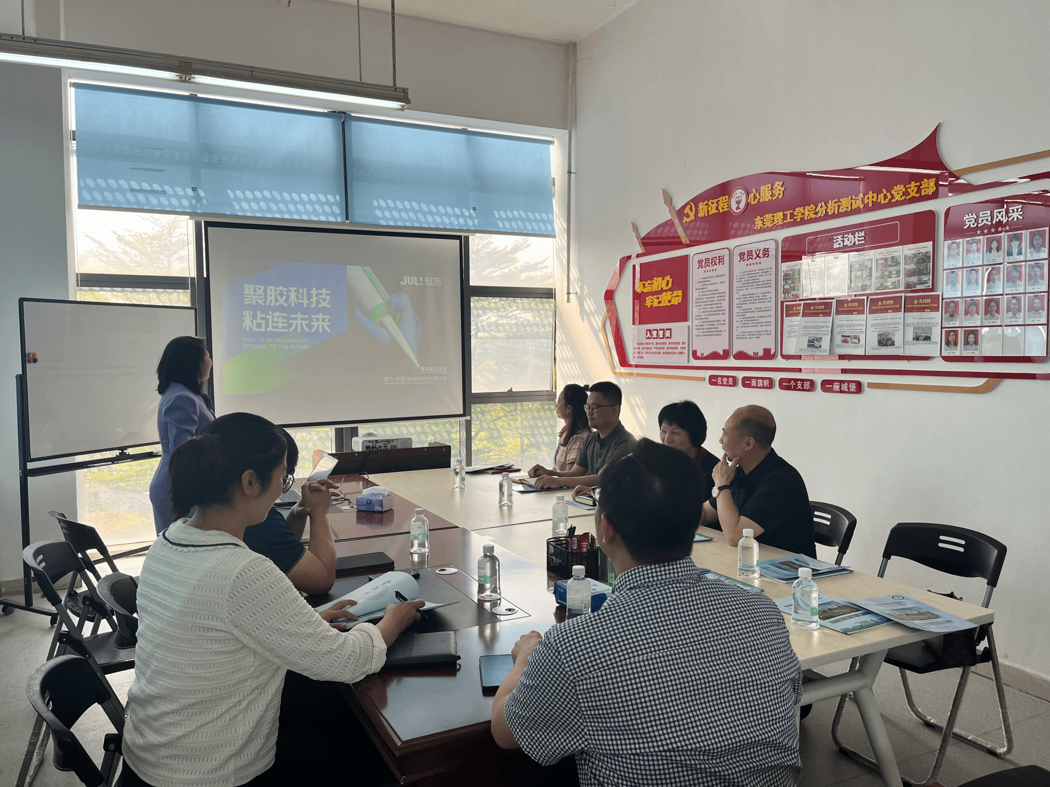 3月25日,聚力(东莞)新材料科技有限公司(下称“聚力公司”)团队到访学校分析测试中心,双方就企业技术难题、分析测试等方面展开交流,东莞市先进生产力促进会副秘书长陈志玲、聚力公司董事长郭俊和、学校科研部副部长王志平、学校分析测试中心副主任傅小波等9人出席了本次会议。