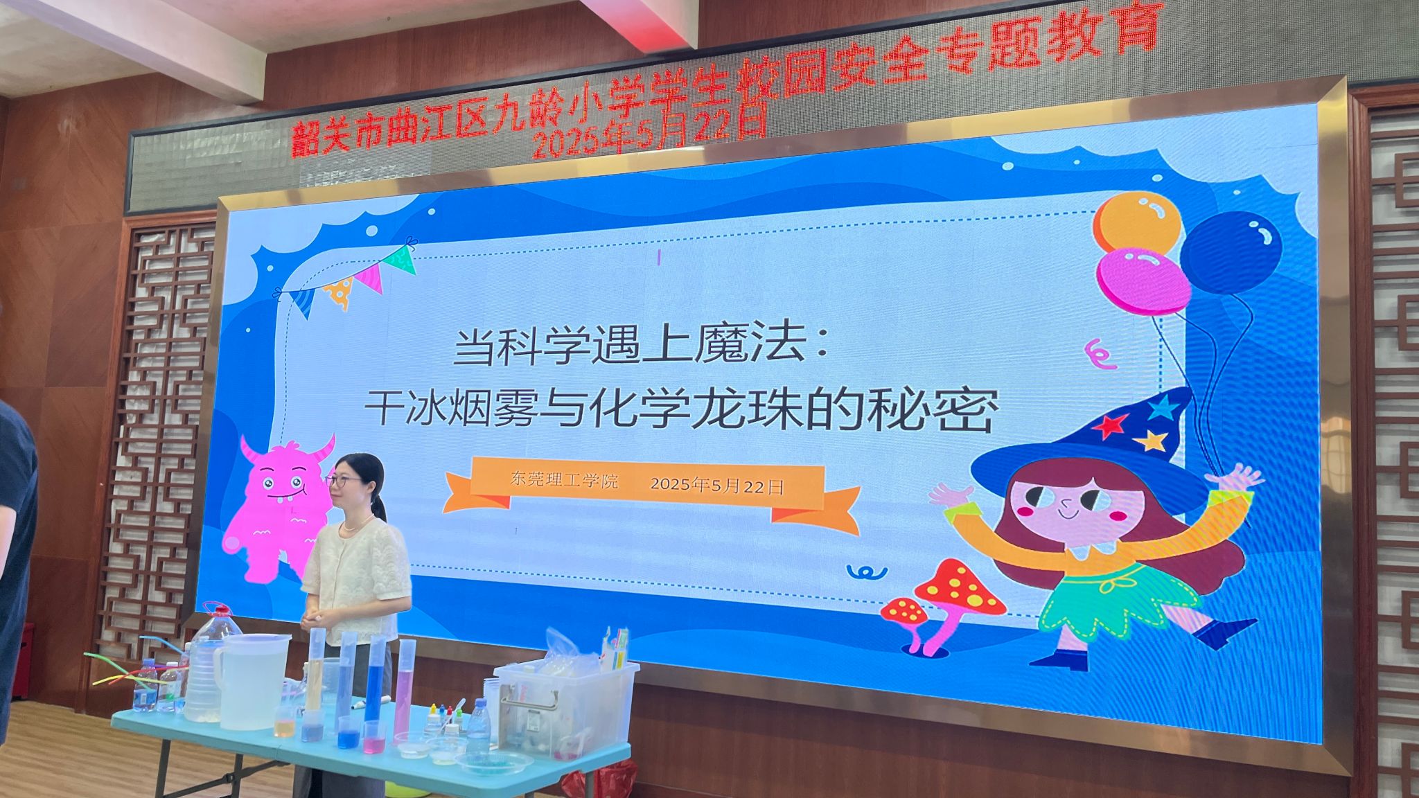 2025522日,一场别开生面的科学魔法秀在韶关市曲江区九龄小学震撼上演。由yl88858永利集团、常平镇—曲江区对口帮扶协作工作队、曲江团区委联合主办的“科普先生”公益活动,以“当科学遇上魔法:干冰烟雾与化学龙珠的秘密”为主题,为150余名师生带来沉浸式科学体验。